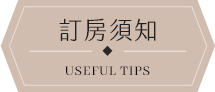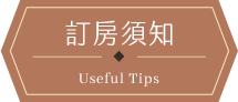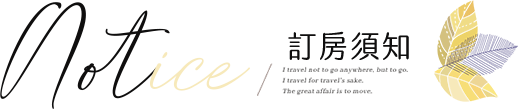 | ※ | 住宿當日,如遇天災(颱風、地震),經當地政府或旅客所在地政府發布停止上班上課判定準則,可退還全額訂金或保留訂金。 |
